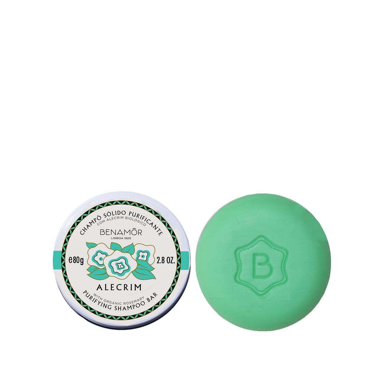 Benamôr - Alecrim - Toilet SoapAlecrim Solid Soap gently cleanses your hands. It contains rosemary essential oil (in Portuguese 'Alecrim') with purifying and calming properties, while eucalyptus and mint are invigorating, decongesting and with a refreshing effect. The skin will be soft, protected and perfectly hydrated thanks to shea butter, coconut oil and sweet almond oil. Glycerin maintains proper hydration. 0% Parabens, 0% Petroleum, 0% Phenoxyethanol, Cruelty-free.
