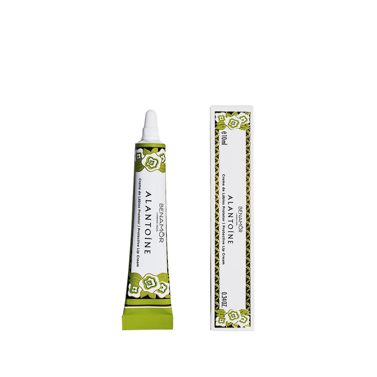 Benamôr - Alantoíne - Gift Set Hand & Body The gift set from the Alantoìne collection offers a lip balm rich in nourishing, emollient and elasticizing components, a body butter with a melting texture for deep hydration and a silky soft hand cream. The box features Benamôr's unmistakable and colourful floral pattern in the evocative Art Deco style.