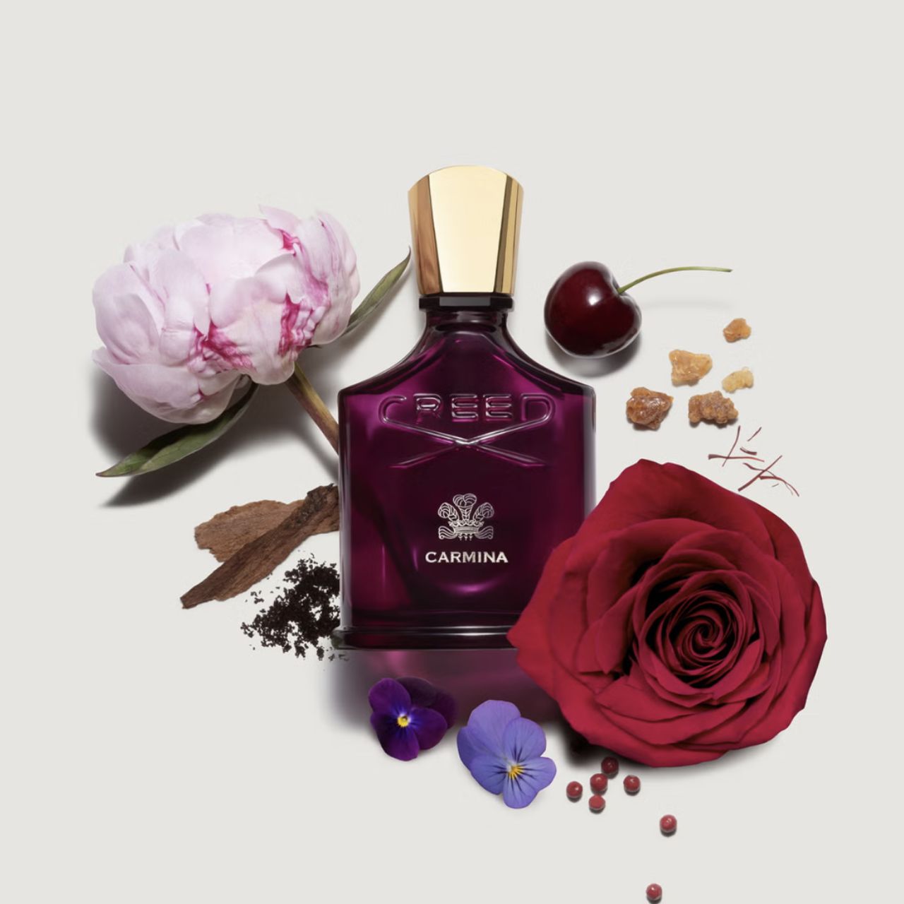 In its intense sillage, black cherry and pink pepper give a contemporary touch to violet and a soft note of rose. Saffron adds warmth, layering with delicate musks and amber. Finally, cashmere wood adds the luxurious woody notes that make Carmina so captivating: a warm and seductive scent that will transport you on an olfactory journey to evocative worlds.